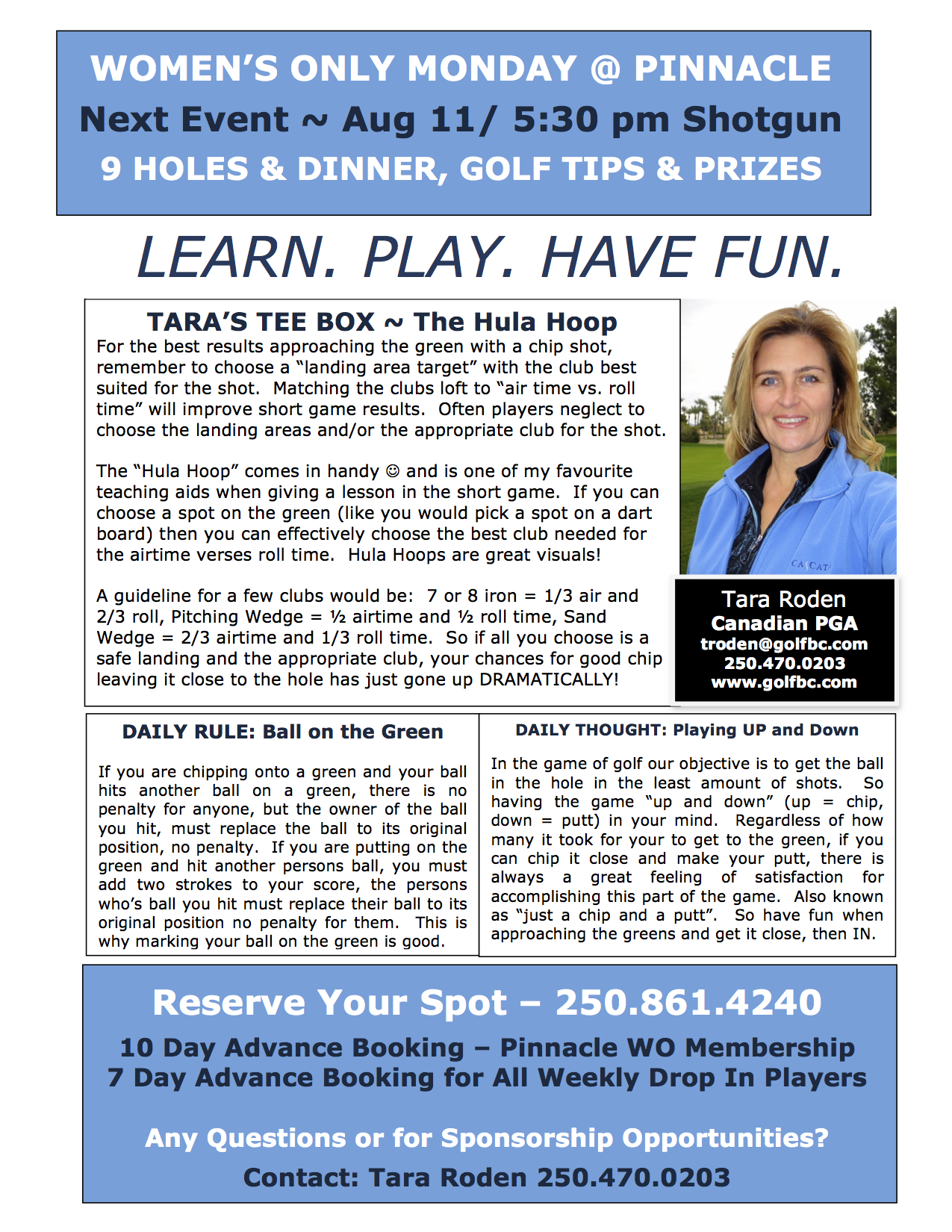 July 28, 2014 by Speedgolf Canada Hawaii Hula… Golf Fun July 28, Pinnacle Women’s Only Join us TOMORROW, Register with Golf Shop at Gallaghers 2508614240 Share this: Click to share on X (Opens in new window) X Click to share on Facebook (Opens in new window) Facebook Click to share on LinkedIn (Opens in new window) LinkedIn Click to share on Pinterest (Opens in new window) Pinterest Click to email a link to a friend (Opens in new window) Email Like Loading... Related